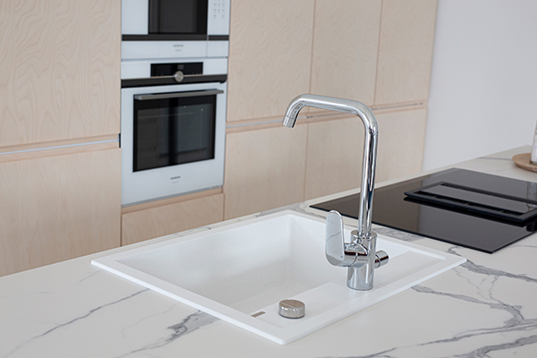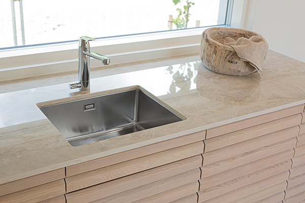 A gorgeous stone worktop from Ylämaan Graniitti with Stala’s undermount steel sink LAGOM-50