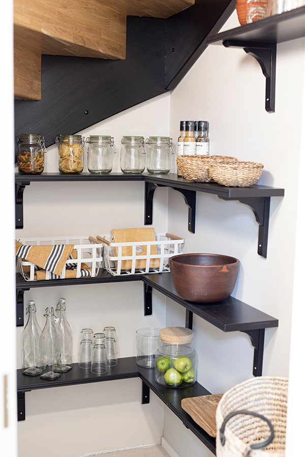 The pantry is cleverly placed under the stairs as was the habit in the old Finnish detached houses called rintamamiestalo.