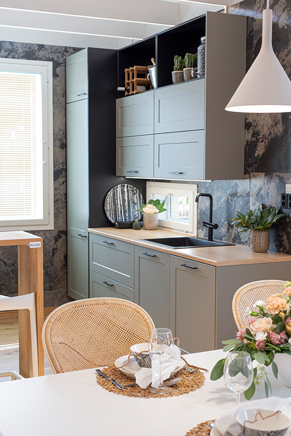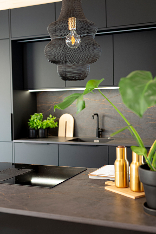 Black was still the favourite colour for kitchens at the Tuusula Housing Fair. Light wood is now often combined with black in many houses, which lightens up the atmosphere.
