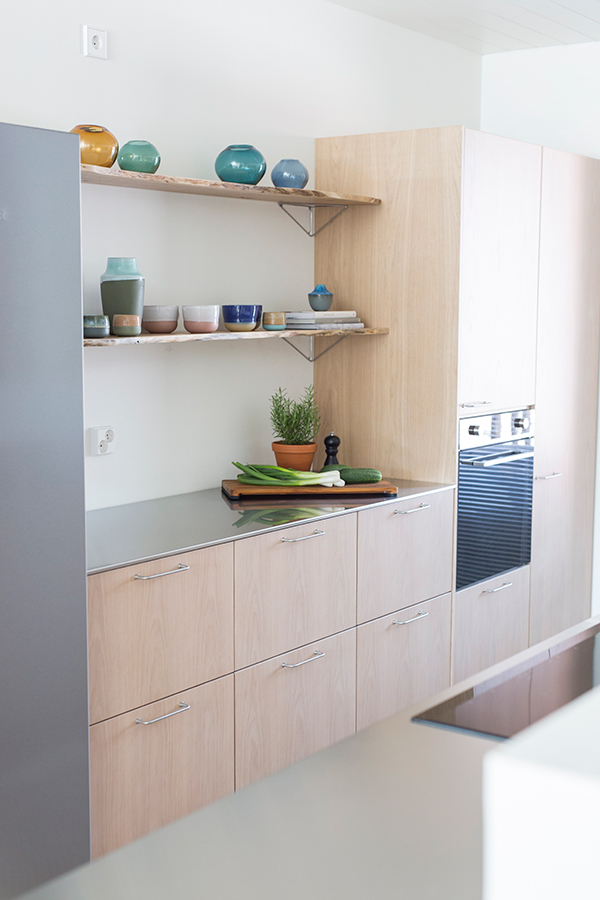A light oak kitchen and a thin 12 mm Stala Tailor-made steel worktop