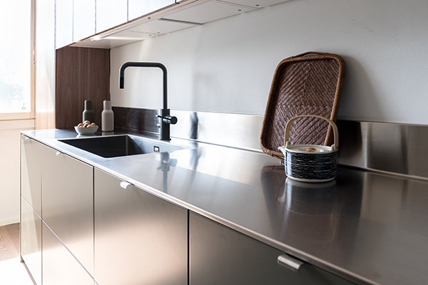 The 12mm thick stainless steel countertop is a very modern solution for your kitchen
