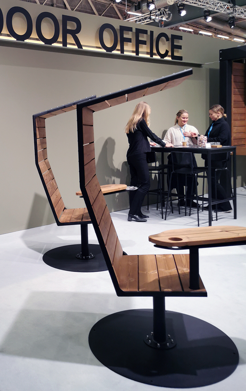 The lifestyle of outdoor living was also visible at the fair in several stands. Efforts had been made to present the furniture in its natural use environment as possible, which was spiced up by, for example, green walls. The outdoor workstations also represented the outdoor lifestyle.