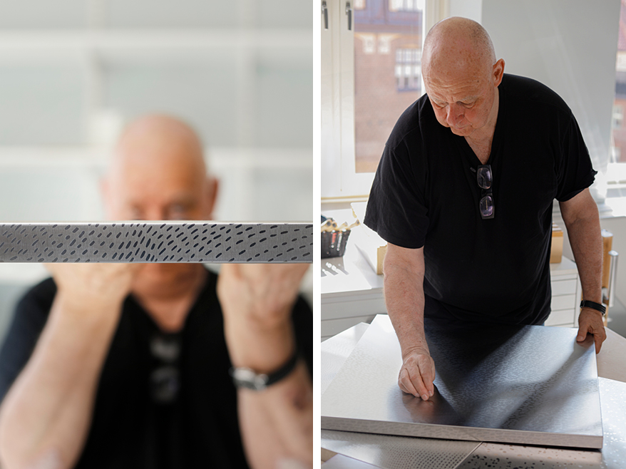The collections created in collaboration with Gert Wingårdh and Matti Klenell strengthen Stala's position as a leading design house for patterned stainless steel. Trace collection, created in collaboration with architect Gert Wingårdh, is inspired by the creative process as ideas turn into lines on paper. At the same time, Stala is also launching a graphic Grid collection designed by Matti Klenell. The patterns designed by Klenell create a sensational contrast to stainless steel.