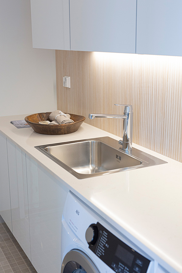 A beautiful wooden panel as the back panel in the utility room — sink Stala Combo P50-60