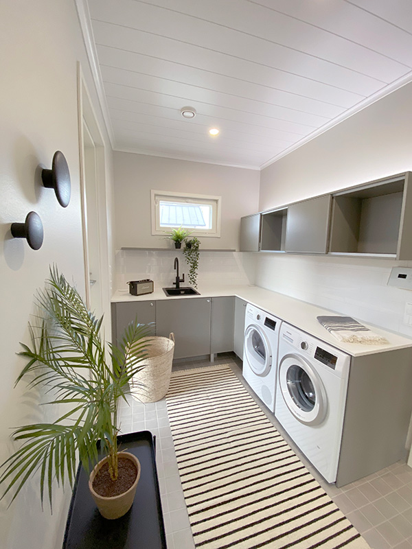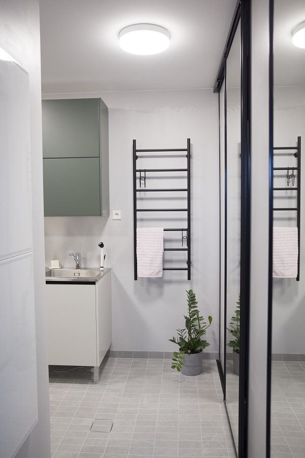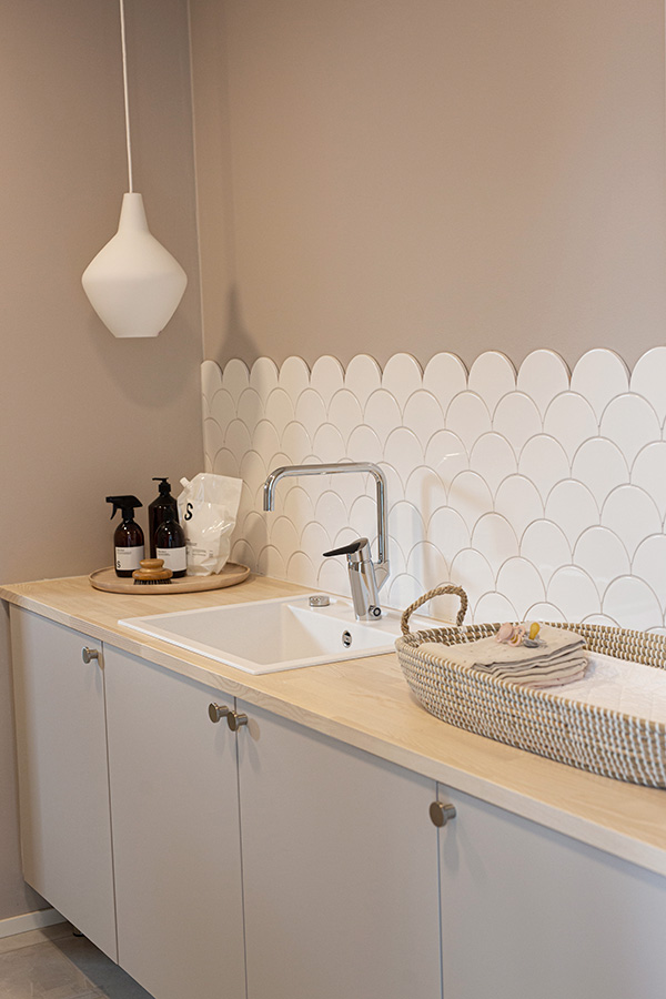 A lot of effort was put into the utility rooms at the Tuusula Housing Fair. The utility rooms had bold and impressive material choices. Some of the utility rooms at the Tuusula Housing Fair were smaller and combined in the same space with the bathroom.