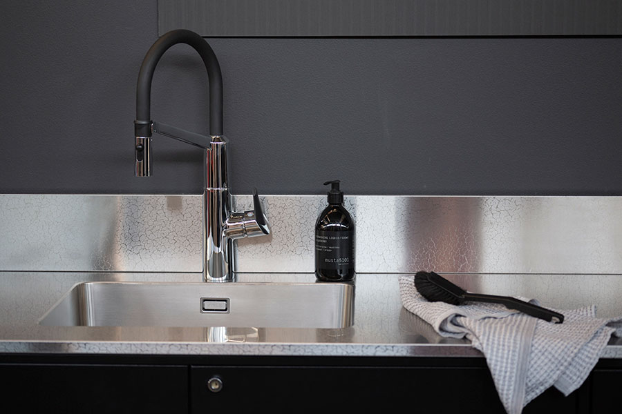 Panel is a stainless steel backpanel for the kitchen or utility room backsplash. The back panel is reinforced with MDF and metal sheets.