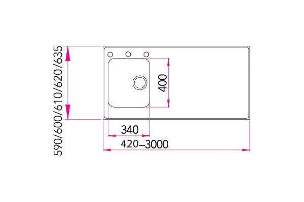 • Dimensions of the bowl 340 x 400 x 180 mm