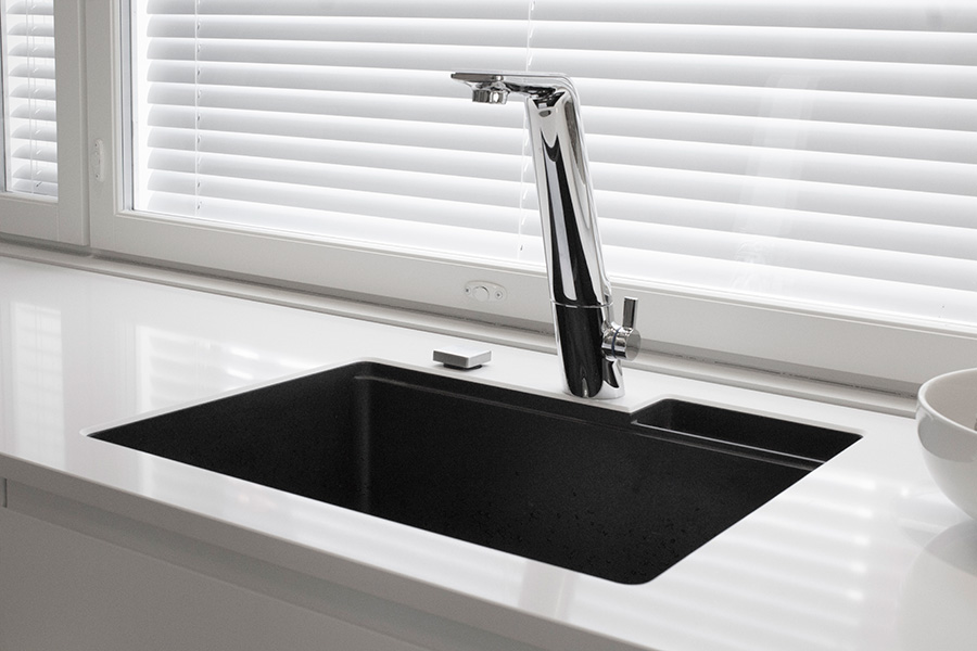 The composite sink is designed for the needs of a modern kitchen, combining both practicality and style. The composite sink is made of a very durable material with quartz as the main component. This makes the surface able to endure use and withstand heat.