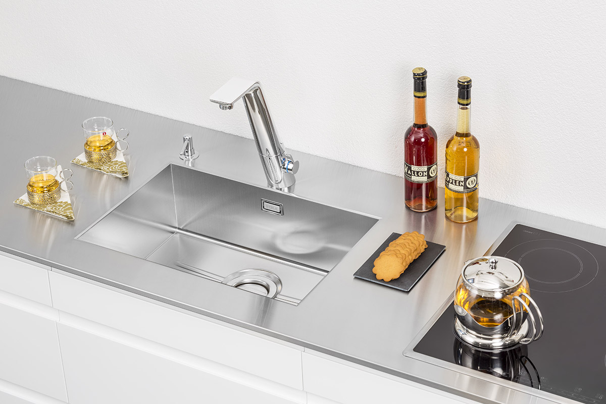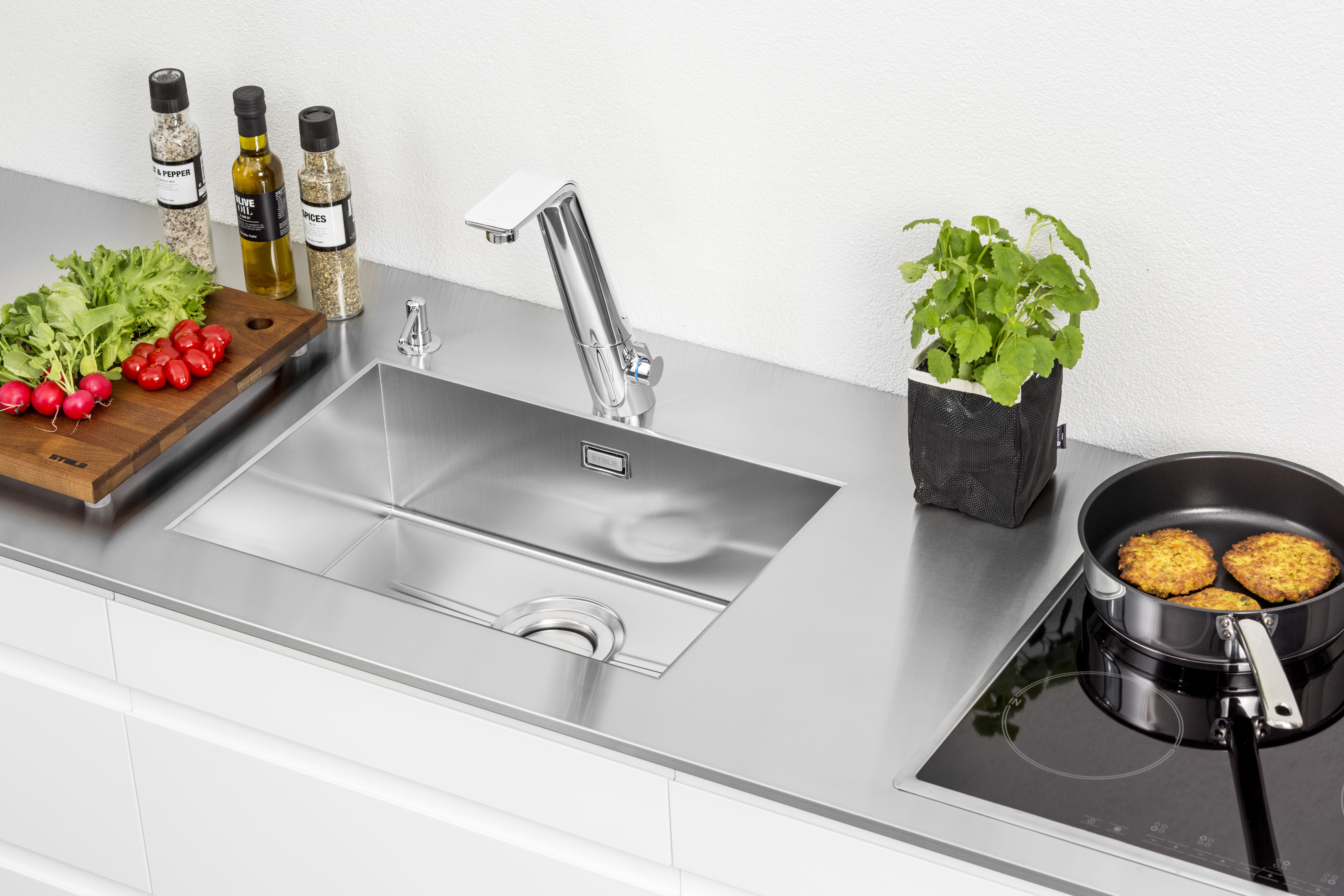 A minimalist design concept is expressed in Desire Kitchen worktops with rectangular bowls. A new Design-cover for the basket waste strainer enhances the modern style of Desire Kitchen worktops. Design your own kitchen worktop easily at www.stala.com. Based on the choices you make, you will receive a rendered picture and dimensional drawing of the worktop you designed.