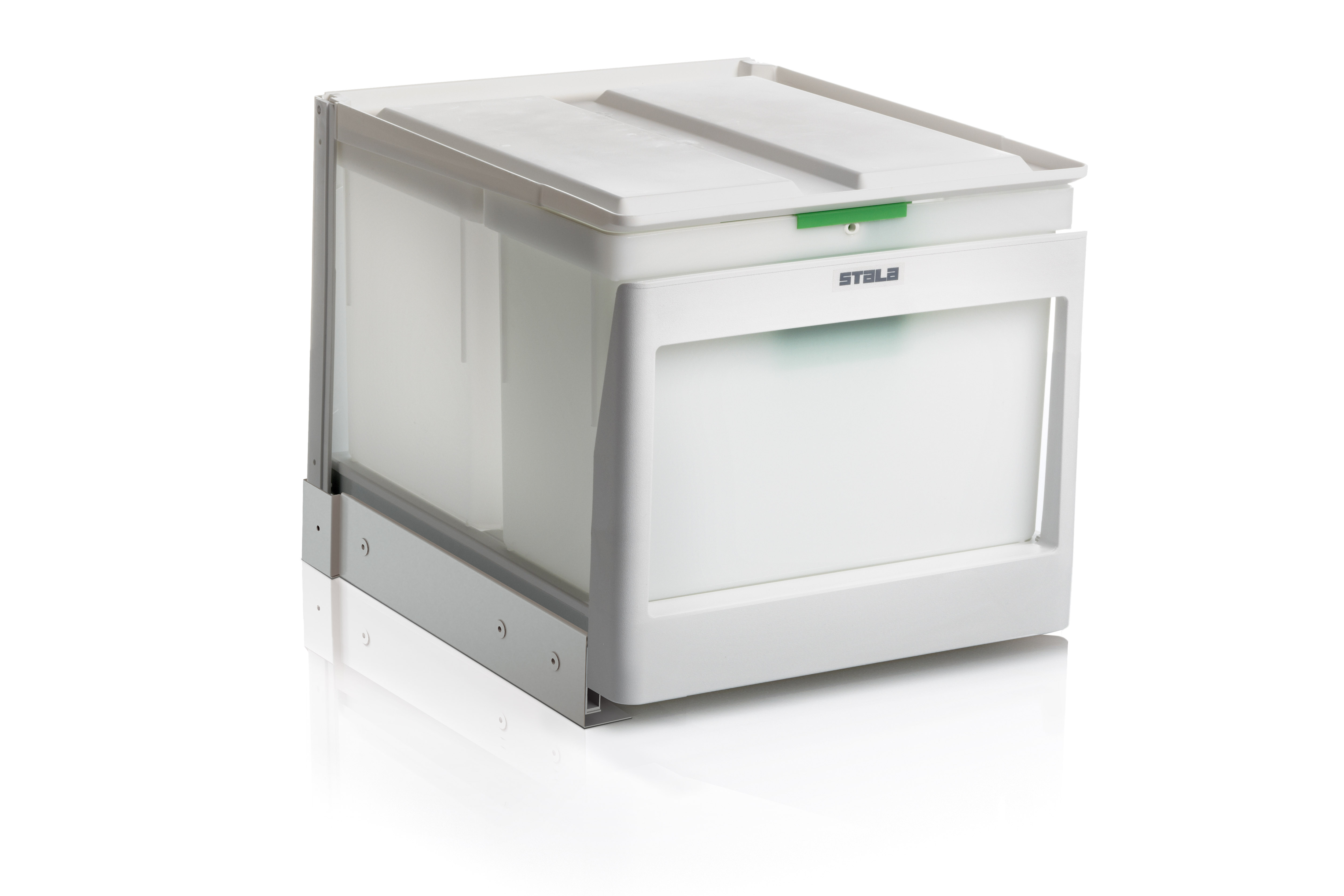 With the door mechanism you make the use of your EkoLine even easier, while the mechanism withdraws the bins when the door is opened. Minimun cupboard width is 50 cm with door mechanism.