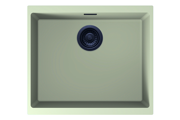 Stala Essent CEG-E50S is a sage-colored quartz composite sink. The sage-colored composite sink is complemented by black details: the overflow, basket drain valve and strainer are all black. Narrow edges round off the stylish look of the sinks.