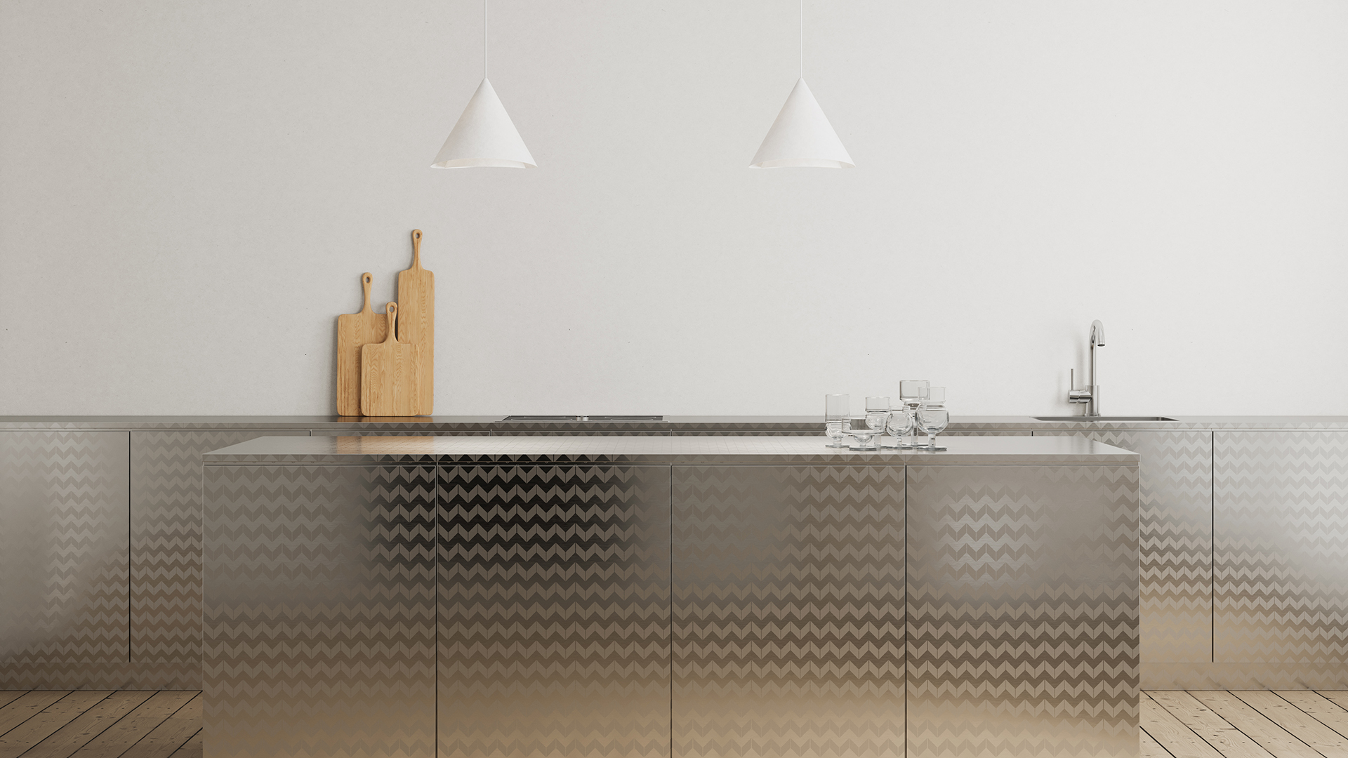 Stainless steel pairs beautifully with various kitchen materials. For added personality, select your favorite from 23 different StalaTex patterns. Learn more about StalaTex >