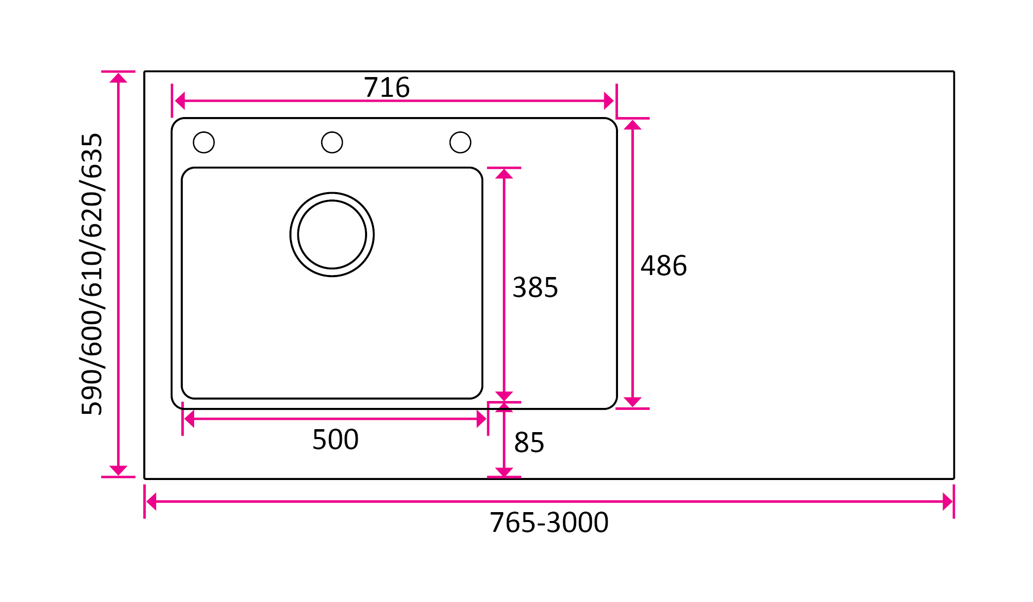 • Depths: 590 / 600 / 610 / 620 / 635 mm