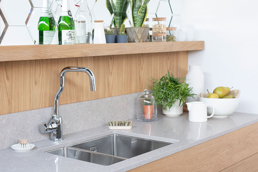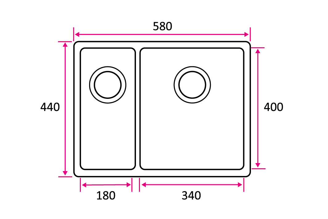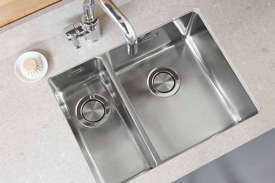 LAGOM-18-34 sink can fit into an 60 cm wide sink cupboard. It has a top quality MONOedge, which fits all methods of installation. The sink is at its best when under mounted onto the counter top. The narrow edge between the bowls saves room and adds a finishing touch to the modern appearance.