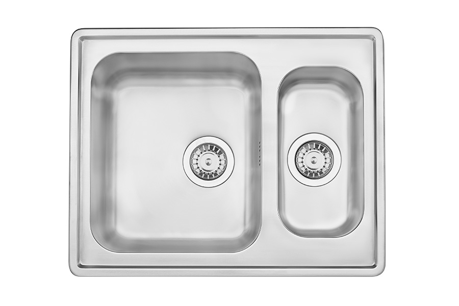 Reversible, smaller sink can be on the left or right side of the main bowl. Minimum cupboard width is 60 cm under the sink.