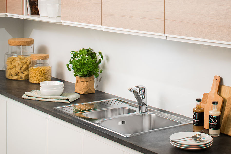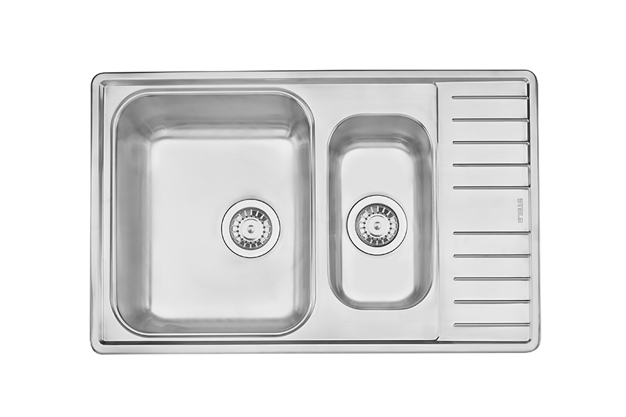 Reversible model, drainboard on the left or right side of the main bowl. Minimum cupboard width is 60 cm under the sink.