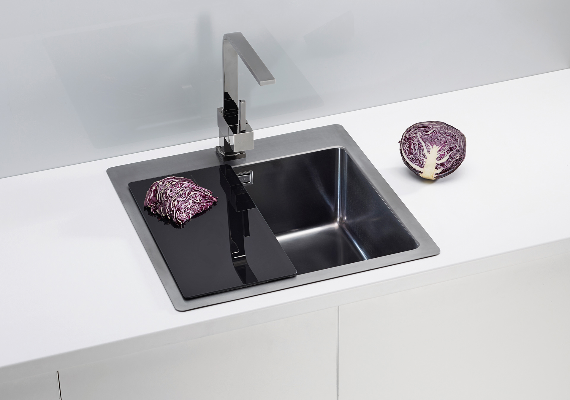 Large square bowl will make you want to clean the dishes over and over. Radius 15 gives a PURE 30 sink an elegant design and yet it makes a sink easy to clean. As the design itself is not enough, we upgraded an elegance of the sink with a F and S installation which makes a sink become one with the worktop.