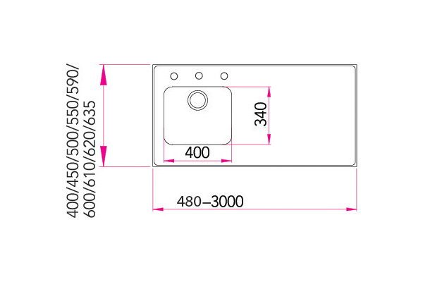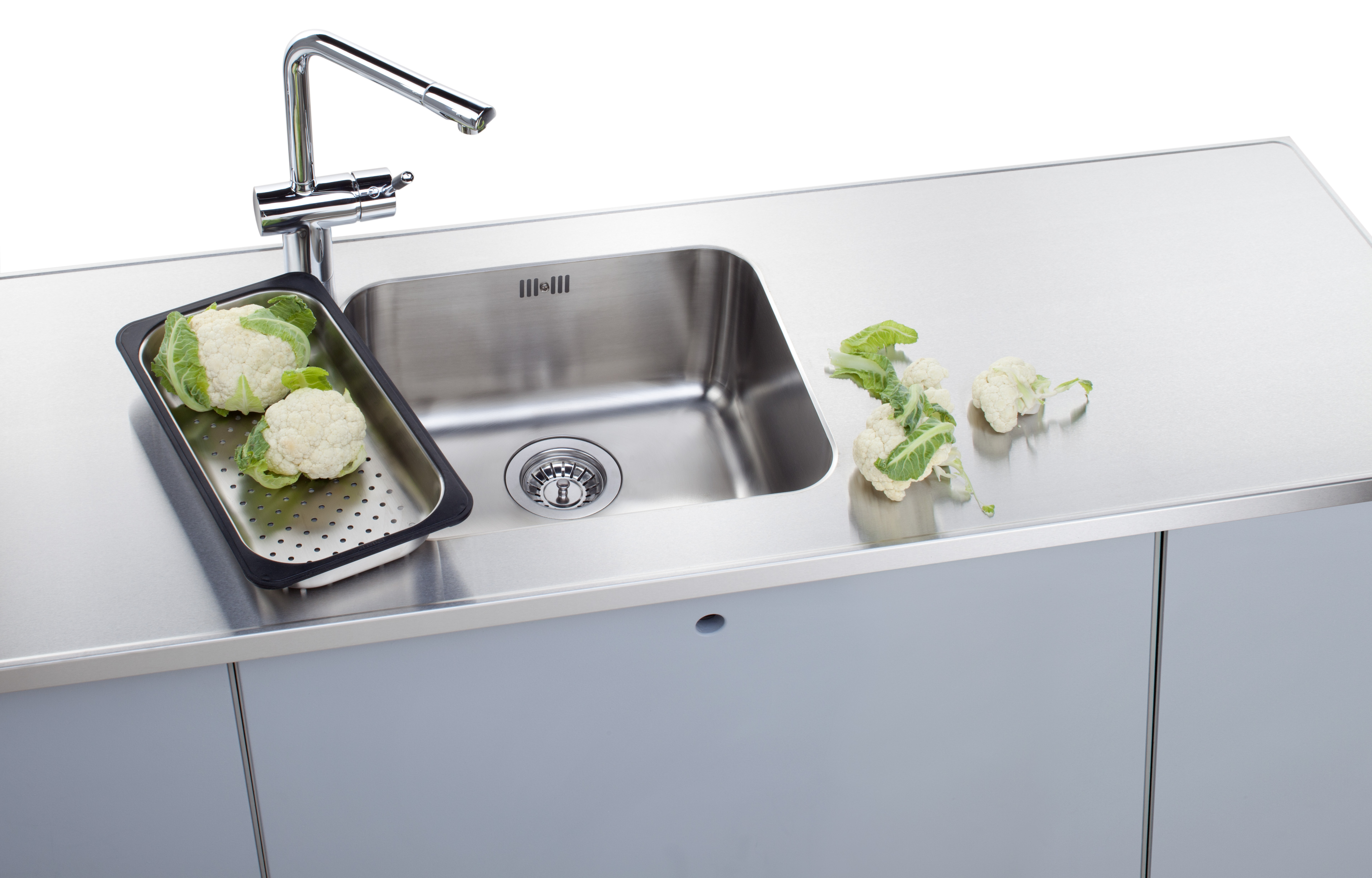 The Stala N-Seven includes is the familiar 340×400 mm bowl but the worktop can be produced as a narrower, even 40 centimeter wide stainless steel worktop.