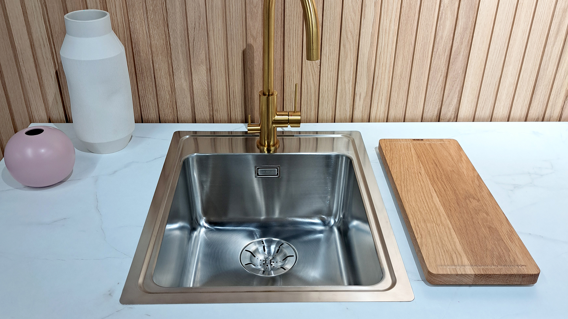 ONE sinks fit into various kitchen styles due to their timeless design language. ONE-T34 is suitable for small spaces and can be installed in a 40 cm or larger cabinet. Despite its compact size, it maximizes space utilization, enhancing kitchen functionality.