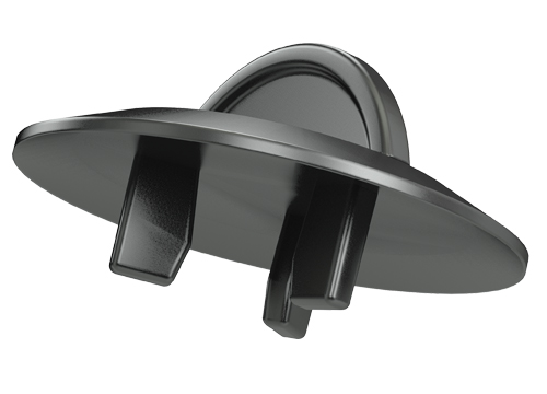 Black rubber plug with three pins. Fits older sinks without a separate strainer.