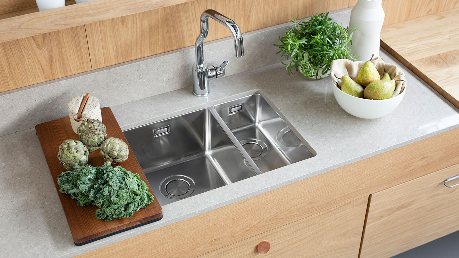 Lagom is simply the best. It is a versatile top quality sink family which offers a suitable model for all cupboard sizes. The current and minimalist design fits all styles of kitchens. The sink bowls are designed to be as spacious as possible (R15) and easy to clean.