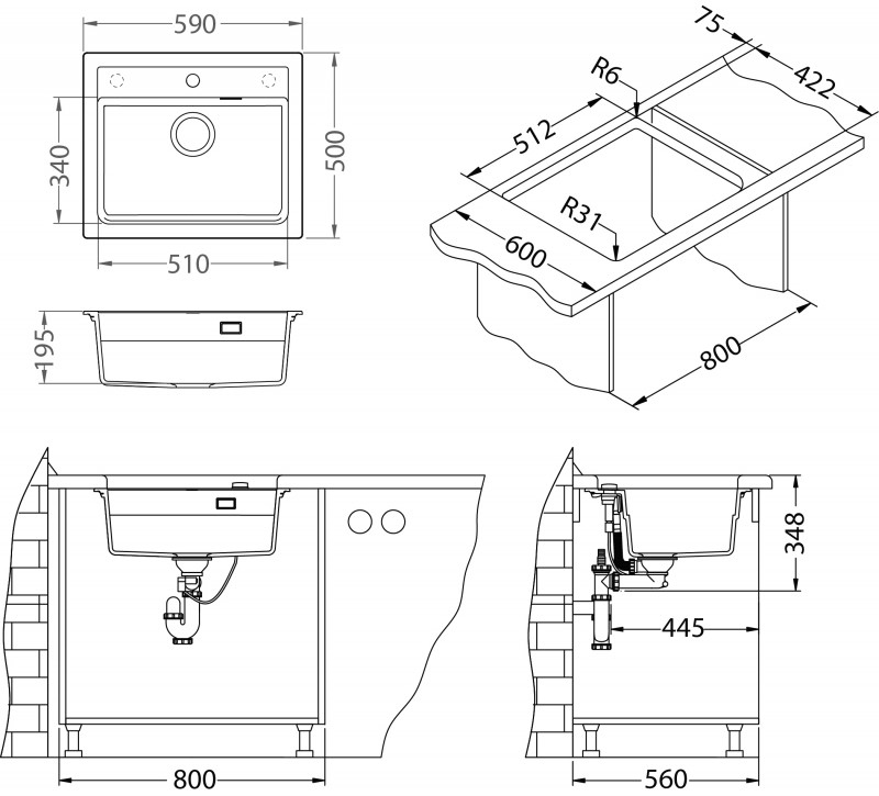 ATROX uses minimalistic design with many great features. It has a deep bowl of 195 mm and utilizes slim rim design which makes for elegant appearance while being one of the slimmest (less thick) GRANITAL sinks.