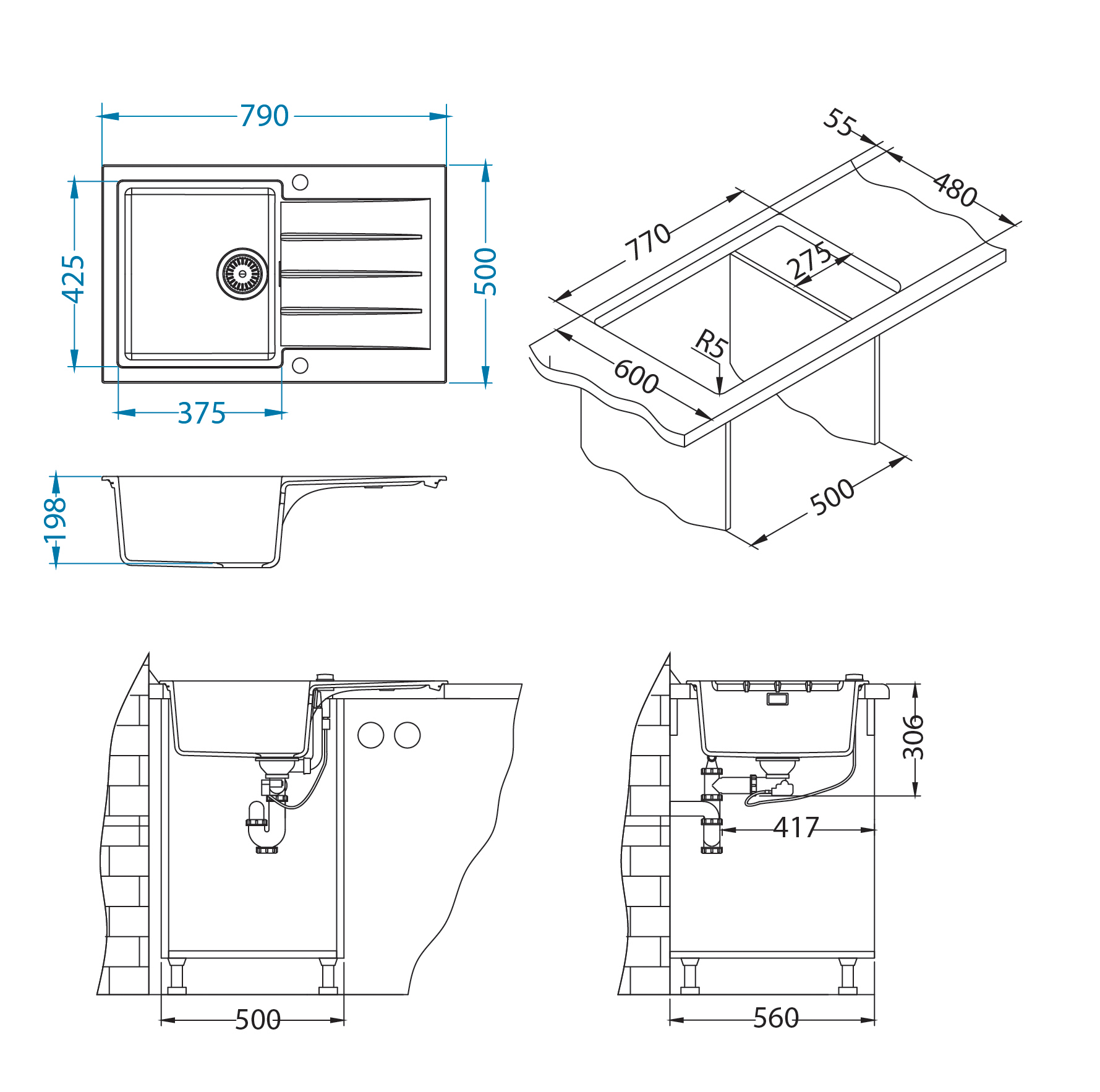CADIT 20 has a medium size bowl in combination of generous depth of 200 mm and uses contemporary design - clean lines with a smooth organic touch. CADIT 20 uses slim rim design - making this sink one of the slimmest (less thick) GRANITAL sinks.