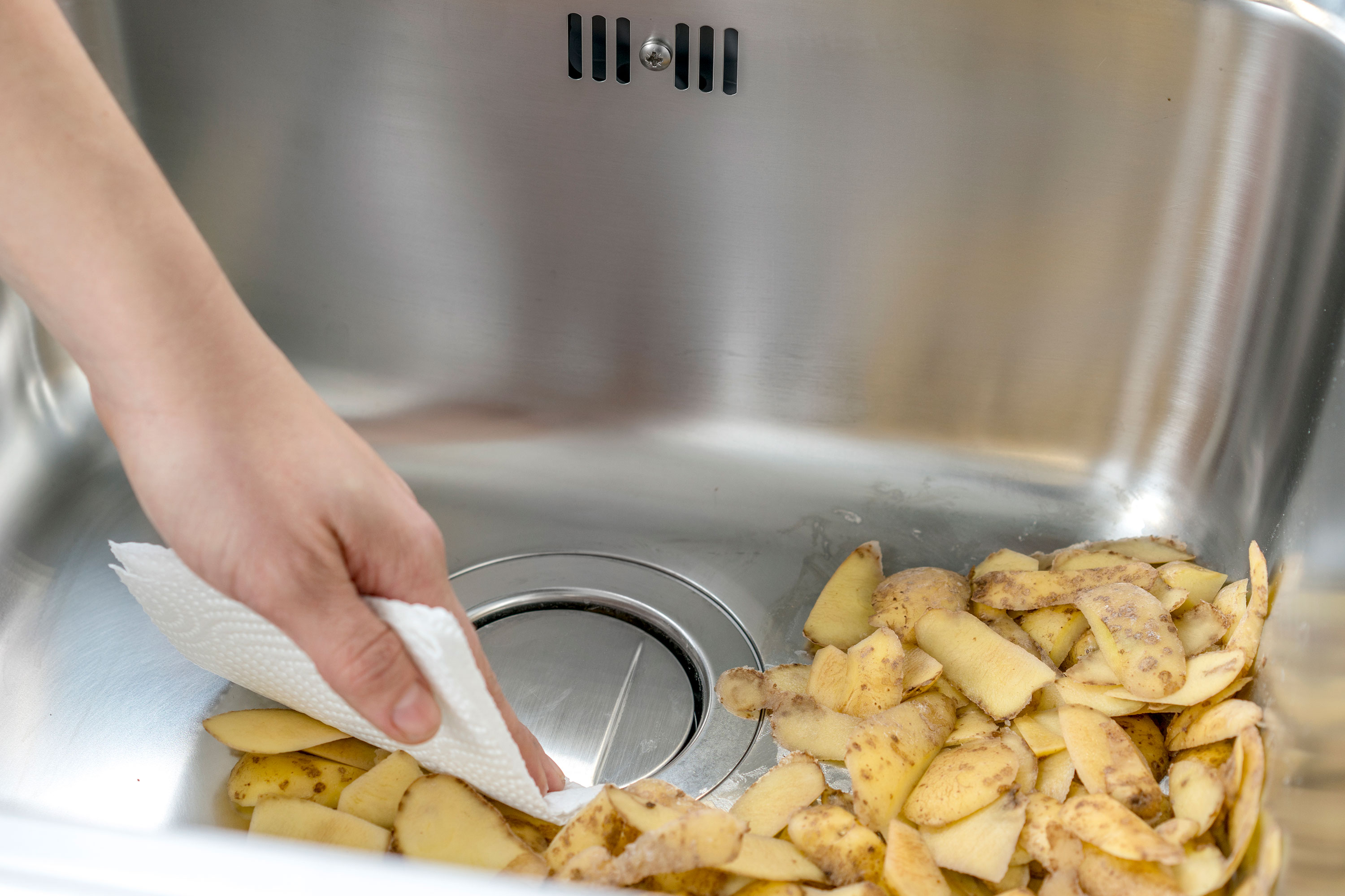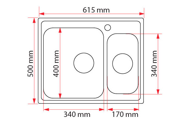 One large bowl and a smaller bowl with minimal stainless steel around them. This is your choice for a sink when you want a worktop next to the basin area that is made of something other than stainless steel.