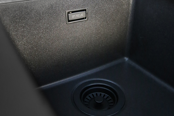 Stala Essent CEG-E34B is a compact all-black quartz composite sink. The Stala Essent collection boasts special all-black composite sinks, complete with black details: the overflow, basket drain valve and strainer are all black. Narrow edges round off the stylish look of the sinks. Thanks to their all-black design, these sinks are ideal for modern kitchen interiors.