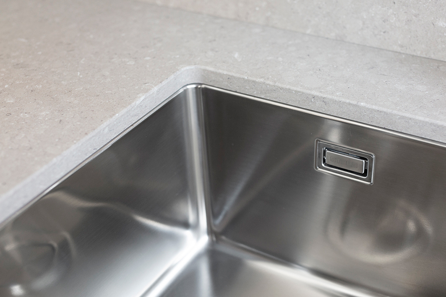 The top quality LAGOM-34 sink is ideal to be installed by under mounting onto stone, composite or ceramic counter tops. The finished MONOedge enables installation by insetting and flush mounting as well. The tap is installed directly onto the counter top.