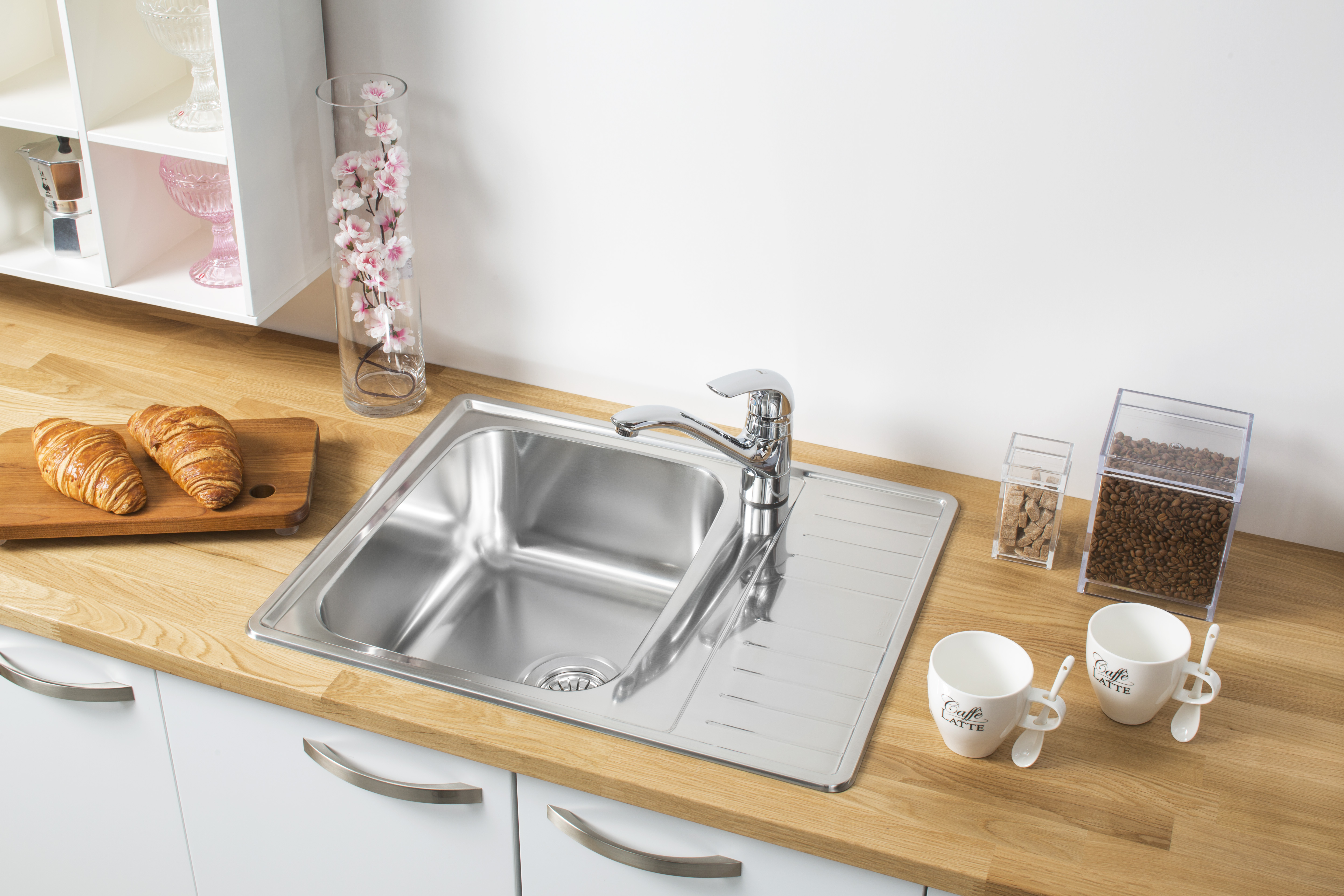 Lyria L40-S is timeless basic sink. With the deepest sink on the market and a shape that controls splashing, you get the most practical features. This sink has a sloping drainboard, so that water from dishes flows back into the bowl.