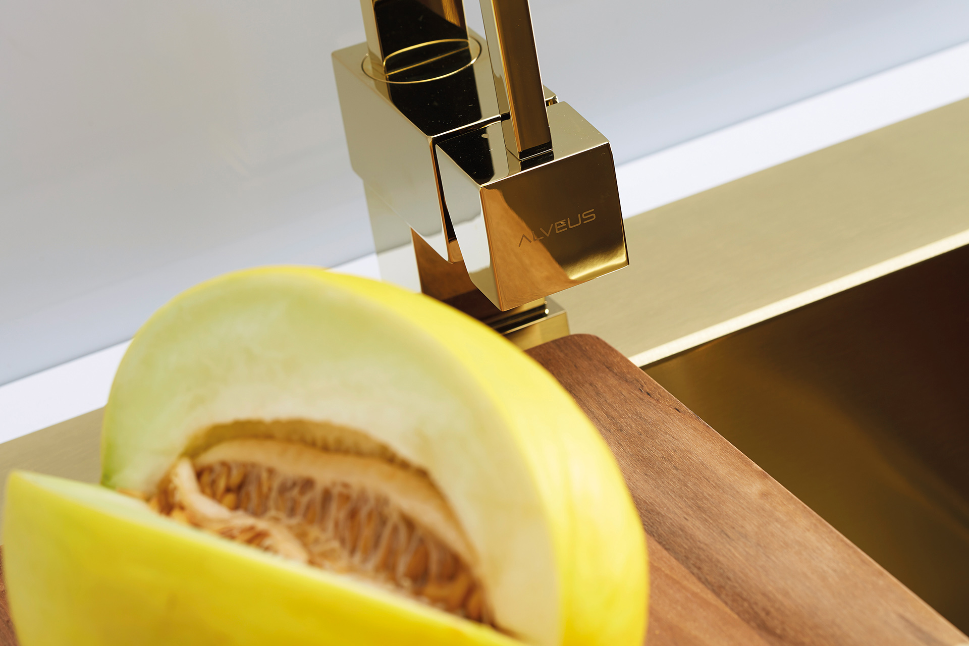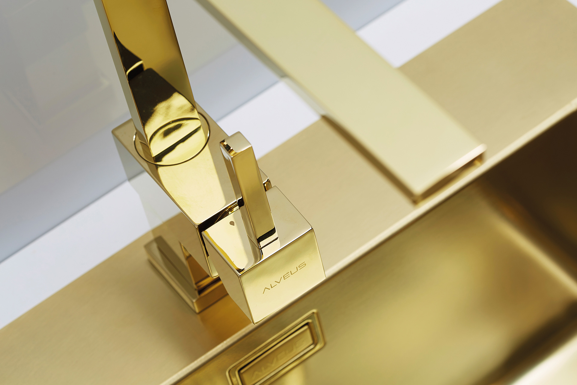 ALVEUS MONARCH uses special surface treatment of stainless steel: a thin vaporized metal substance known as ceramic nitride is deposited onto the stainless steel surface, resulting in unique metal lustre and increased scratch resistance. Known also as PVD coating. The surface-treated stainless steel is available in four precious metal colour shades GOLD, COPPER, ANTHRACITE, and BRONZE.