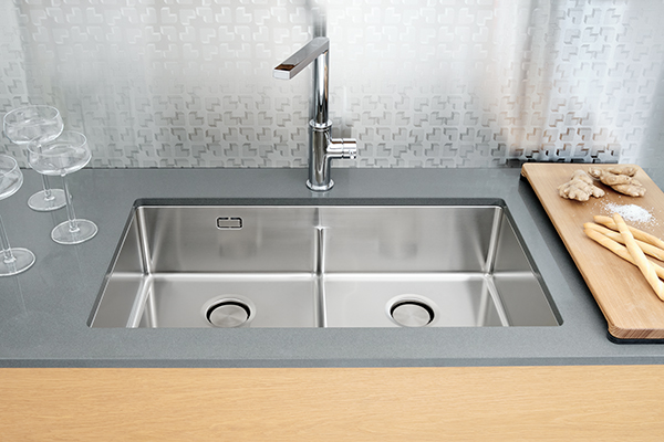 functional elegance and stylish modernity to your kitchen. The seamless design pleases the eye and ensures more hygienic living. This sink is ideal to be installed by under mounting onto stone, composite or ceramic counter tops.