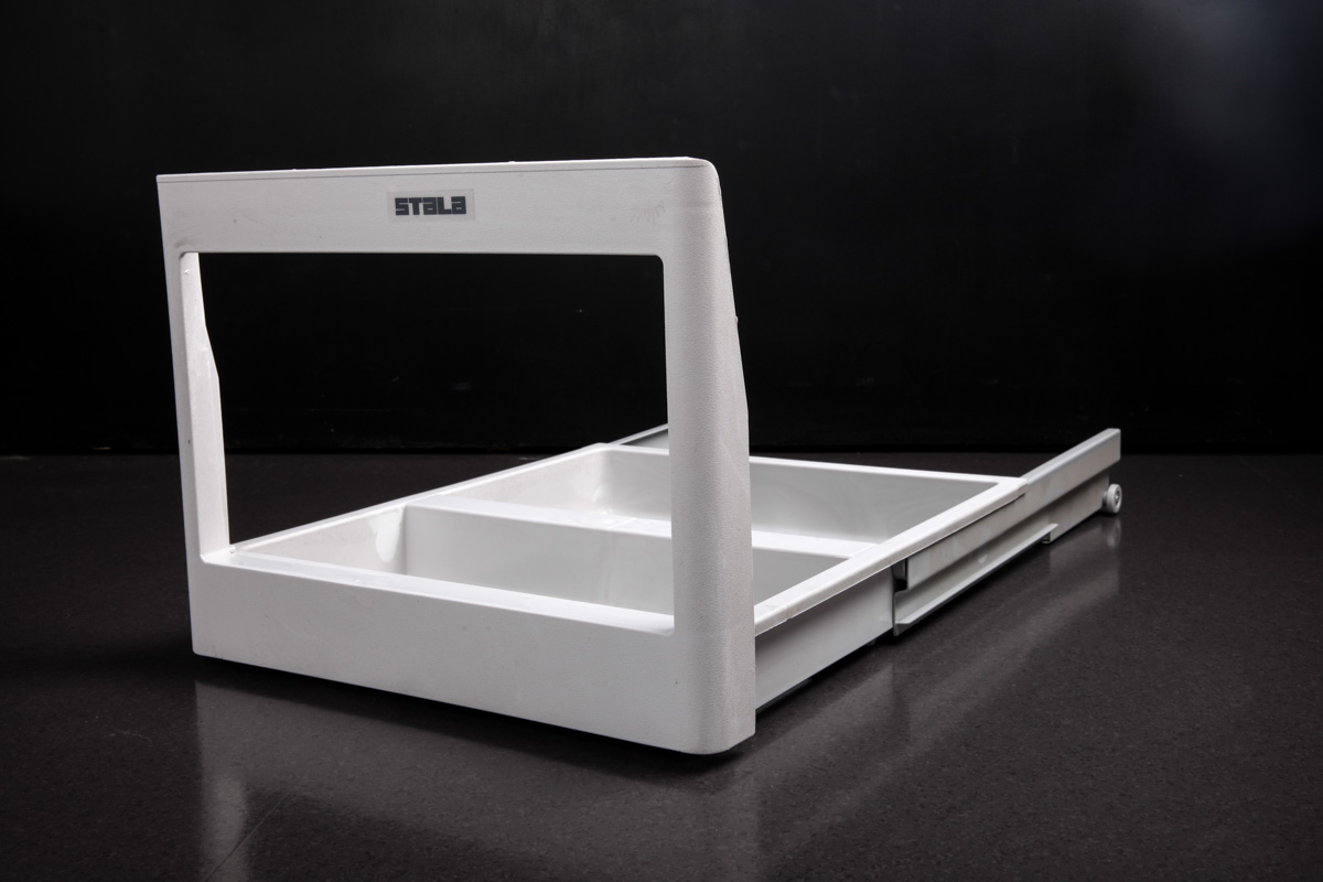 This is a spare part for big EkoLine waste sorting systems with plastic bars. Y-1237 includes both trolley and slide but not the bins nor the installation trails. Fits models EKO-2SK, EKO-3SK and EKO-4PK.